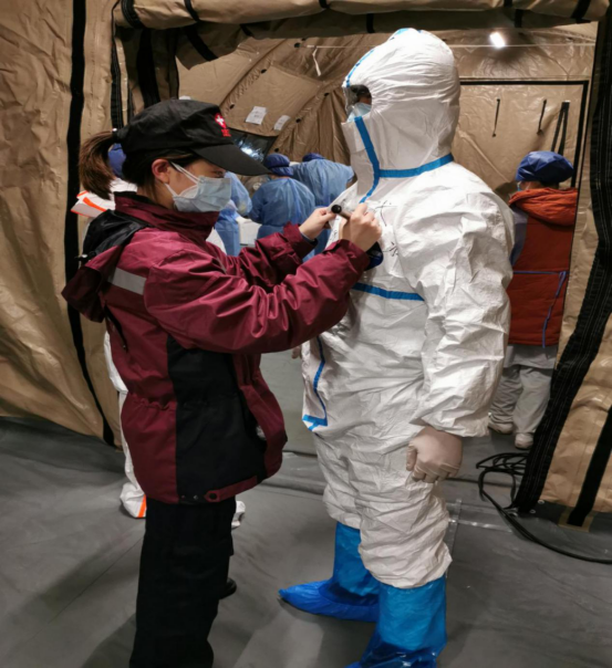 监督他们练习防护用品的穿脱、洗消流程时,先左手还是先右手,先洗还是先脱,每一个步骤我都严格把关。一遍不行就两遍,两遍不行就三遍,反反复复几十遍,直到每个人将每个动作烂熟于心。“一个微小的失误就可能给病毒可乘之机!手套脱早一步、防护服脱快一秒,就可能造成气溶胶颗粒对衣物的二次污染!”