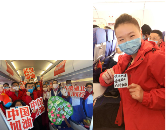 这支队伍是一支由呼吸内科、重症医学科、心血管内科、急诊医学科、神经内科、肾脏内科、肿瘤科医护人员组成的多学科团队,10个人个个都是“精兵悍将”。还记得在乘坐包机飞往武汉的路上,我们放声歌唱着《我和我的祖国》,每个队员都神情坚毅,犹如即将上阵杀敌的战士。