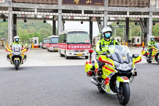 在渝蓉高速路口,等候在此的璧山区公安交警向队员们献上了庄严的敬礼,用最高礼遇护航英雄回家。