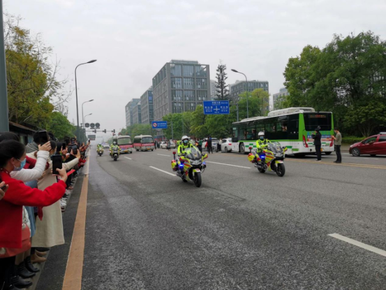 市民摇旗欢迎,车辆鸣笛示意,特警整齐列队,医护人员夹道迎接……每个人,都用最热烈而朴实敬意为英雄们“接风洗尘”!今天,这座小城最美的景色,属于这些抗疫英雄们!