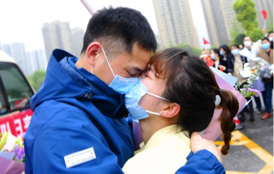 当车门打开的一瞬间,所有人齐声高呼:“抗疫英雄,欢迎回家!"家属、同事一拥而上,动人画面中流淌出的,是喜悦、是感动、是希望,是时隔70天的深情一吻,是稚嫩女儿的破涕为笑,是母女相拥的热泪盈眶……