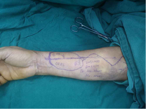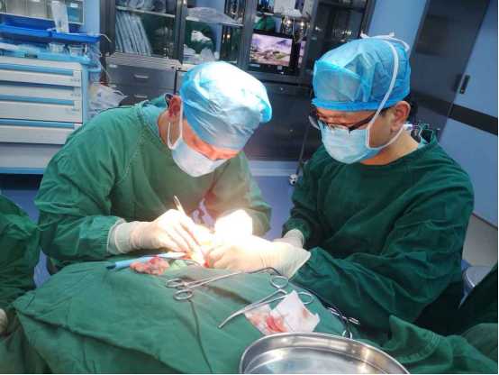 该患者舌癌恶性程度高,容易发生淋巴结转移,若不能从根源上进行治疗,极容易的复发。考虑到患者病变范围大,经我院耳鼻咽喉科主任柳庆君、手足外科主任修光文及口腔科主任陈渝斌充分会诊讨论,决定切除其左半舌,然后予以“补舌”修复。手足外科及耳鼻咽喉科MDT团队精诚协作,为患者开展手术,完成了左侧半舌切除+功能性颈部淋巴结清扫+气管切开+游离皮瓣整复术(舌)+皮瓣供区游离皮片移植+血管移植术。手术顺利,术后患者很快就能正常进食,目前已平安出院。