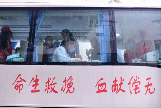 我院医护人员带头上阵献血,现场志愿者和群众也纷纷挽起袖子,献出热血。