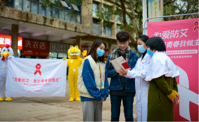 连日来,我院感染性疾病科医护人员走进璧山区机电职业技术大学,开展了爱心签名、贴“红绸带”、健康体检等公益活动,为年轻师生进行艾滋病防控科普宣传。