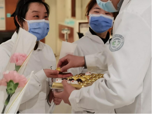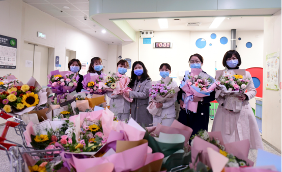 眼科男同胞手捧康乃馨,为眼科所有的女性医务人员献上真挚祝福。