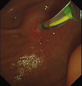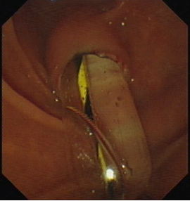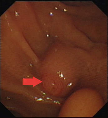 第一步,先将十二指肠镜到达十二指肠乳头处,将通过十二指肠乳头进入胆总管取石