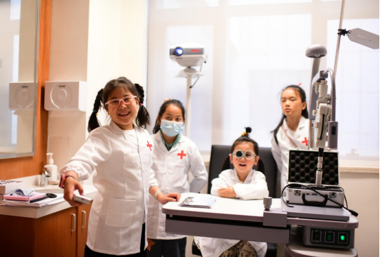 活动开始,医护人员为小朋友们换上了干净整齐的白大褂。小朋友们通过客串“小医生”,以视力检查、色盲、立体视、检光等方式,体验给“患者”看“眼病”全过程,争做一名“健康小卫士”。