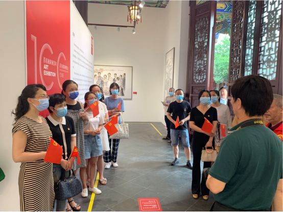 7月5日,璧山区人民医院的职工们走进璧山美术馆,参观了表现建党百年伟大成就和璧山美好人文生态的《百名画家画百年·百名画家画璧山——庆祝中国共产党建党百年专题艺术展》 。寄情山水、翰墨飘香、书画传情,职工们通过参观绘制精良的艺术品感悟中国共产党成立100周年的光辉历程和璧山风华。