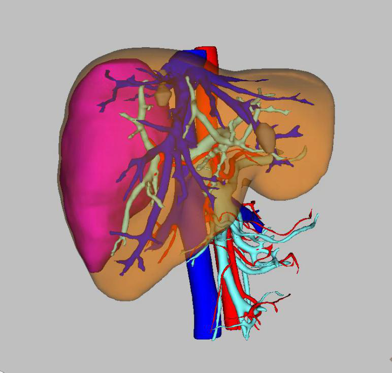 41岁的患者颜某,2月前在体检检查中发现肝占位性病变,但并未给予特殊治疗,近日患者右上腹部隐痛不适频繁发作,遂来我院就诊。行腹部增强CT检查后,诊断为肝血管瘤,肝胆胰外科陶锐主任医师组织团队谨慎地讨论了颜女士的病情,经三维可视化重建技术将肿瘤行重建后,最终决定以腹腔镜的形式切除血管瘤。
