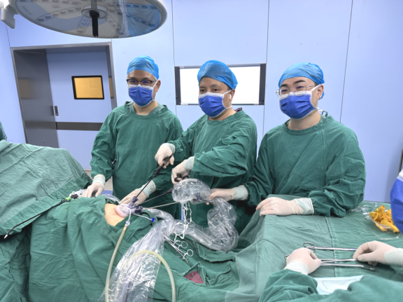 单孔腹腔镜手术兼顾了微创与美容需求,颇受广大患者欢迎。但该类手术仅通过一个操作孔完成腹腔镜下分离、切割、缝合等操作,同时要克服“器械打架”、操作自由度及术野显露不佳等难题,对手术医生及团队配合要求非常高。我院肝胆胰外科熟练实施开展单孔腹腔镜下胆囊切除手术,效果满意。