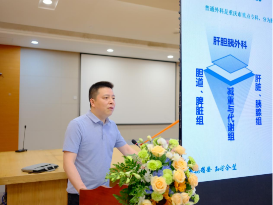 院长郭进军在致辞中指出,我院肝胆胰外科、肥胖与代谢外科陶锐主任医师带领肥胖与代谢外科团队在今年3月2日成功完成了璧山区首例腹腔镜袖状胃切除术。该团队敢为人先,不断开展新技术,填补了我区在减重代谢外科专业领域的空白,标志着我院减重和代谢外科迈上了新的台阶。希望医院职工珍惜此次难得的学习机会,同与会专家多交流、多探讨,不断丰富自己的理论知识和技术水平,更好地为辖区内的肥胖患者提供更高质量的诊疗服务!