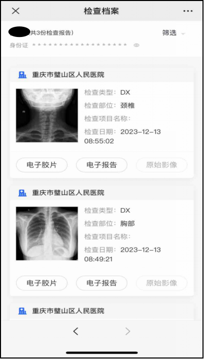 1.全市提供聚合查询服务,通过支付宝、微信搜索“渝康健”可查询全市已接入医院的影像及报告。