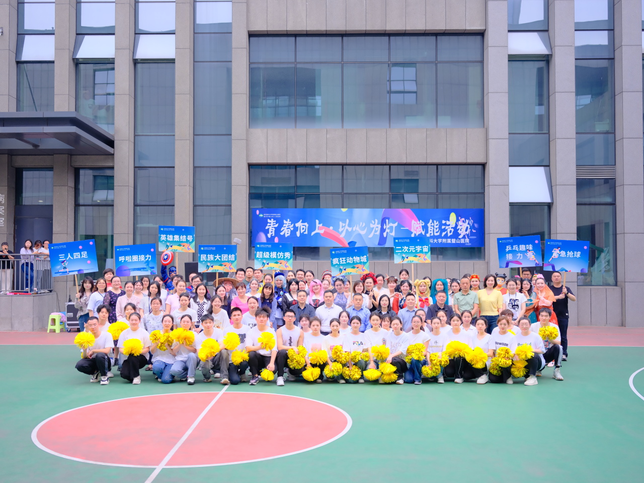 为隆重纪念“五四”青年节暨“5·12”国际护士节,持续推动医院文化建设,增强队伍凝聚力和向心力,5月7日,一场以“青春向上 以心为灯”为主题的赋能活动在院篮球场成功举行,全院在岗职工和在院学生代表共计200余人参加。