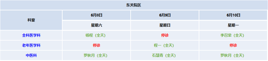 六、东关院区排班