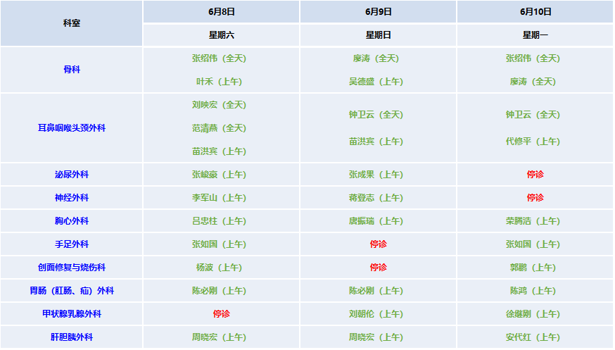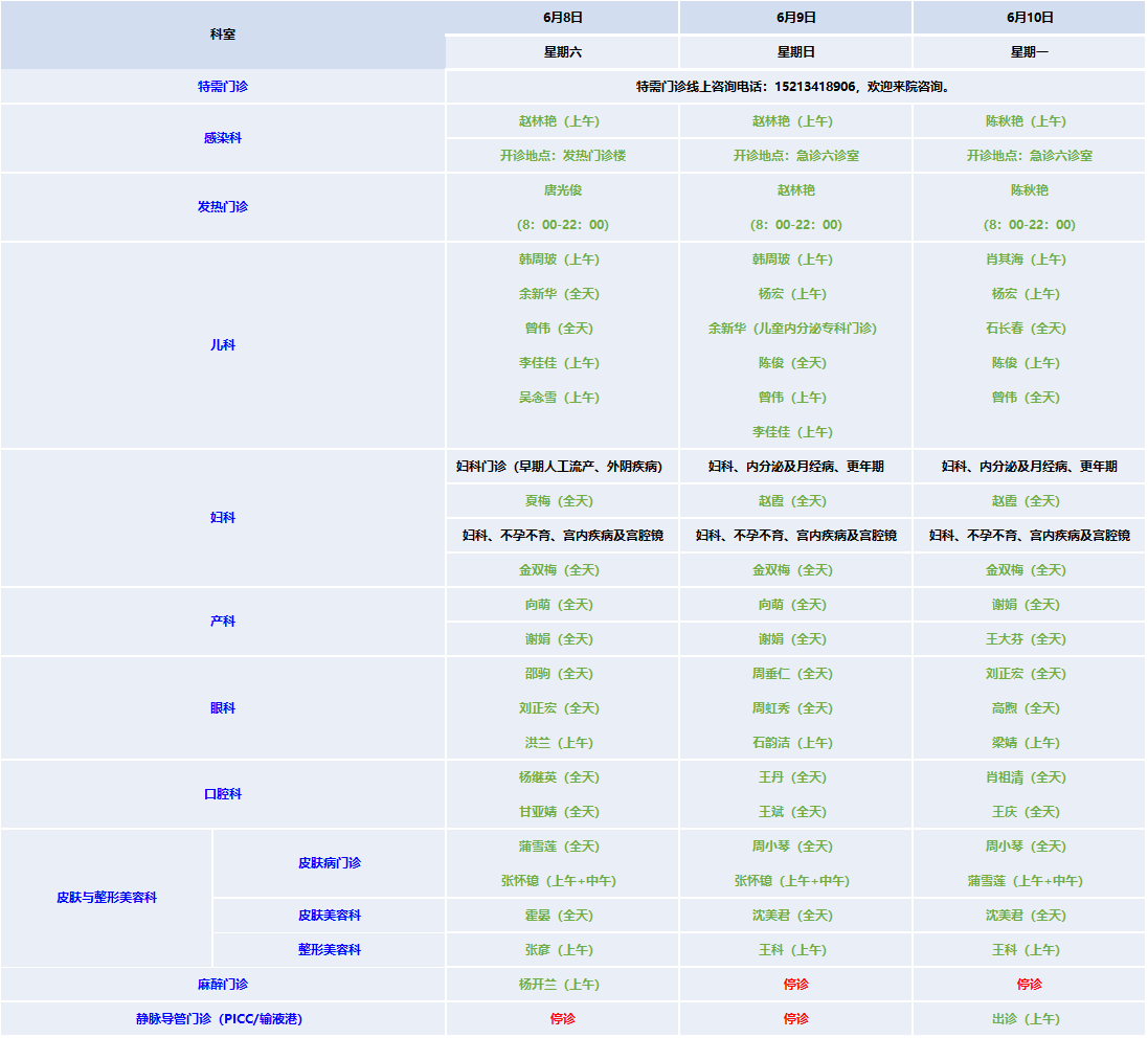 (四) 喉镜端午期间正常出诊;