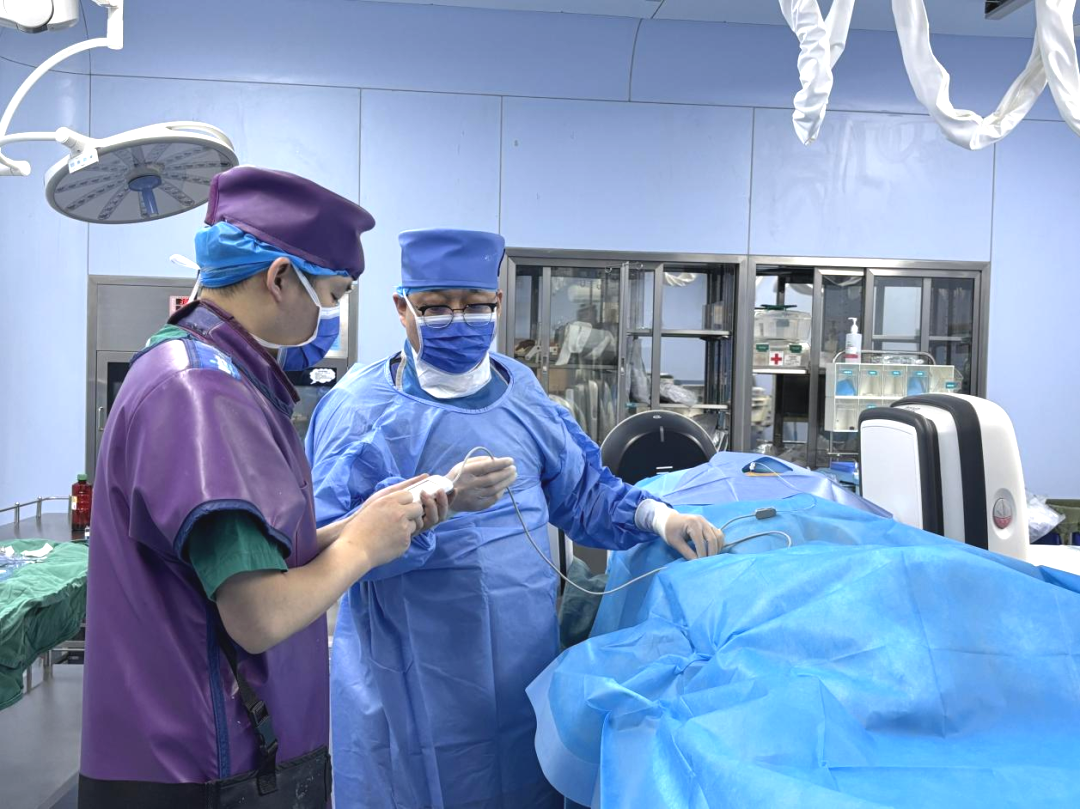术中,在DSA实时指引下,手术团队精准地将电极植入高颈段脊髓硬脊膜外间隙,最终手术顺利完成。目前,患者能自主睁眼且睁眼时间较长,且能简单遵嘱,正在积极接受后续康复治疗。