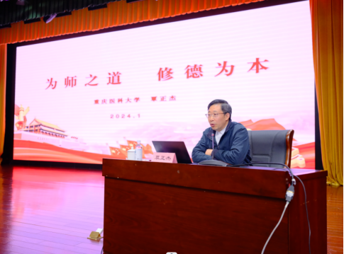 按照习近平总书记关于加强高校党的建设,办好“思政课”的有关要求,提升医院教师队伍思想政治与教育教学能力建设,坚持教育者先受教育。2024年1月31日,我院特邀重庆医科大学党委书记覃正杰来院开展师资队伍思政能力专题讲座。院党委书记钟华琴、院长郭进军及全体院领导、中层干部、临床骨干师资代表300余人参加此次培训,院党委书记钟华琴主持培训会议。