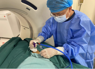 近日,我院呼吸介入团队为一例叶间裂旁肺结节患者进行了微波消融治疗,术中消融针精准命中靶病灶,术后晕征较好地覆盖病灶,恢复良好,术后三天患者好转办理出院。