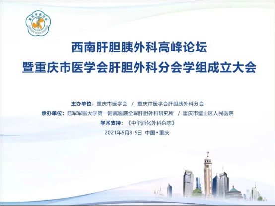 西南肝胆胰外科高峰论坛暨重庆市医学会肝胆胰外科分会学组成立大会于5月8-9日在重庆市澳维酒店成功召开。该会议由重庆市医学会、重庆市医学会肝胆胰外科分会主办,陆军军医大学第一附属医院全军肝胆外科研究所、重庆市璧山区人民医院承办,《中华消化外科杂志》学术支持。中国工程院院士、中国医师协会常务副会长、清华大学附属北京清华长庚医院院长、《中华消化外科杂志》总编辑董家鸿教授,重庆市医学会肝胆胰外科分会主任委员、陆军军医大学第一附属医院张雷达教授担任大会主席。采用线下与线上会议结合模式,邀请来自全国肝胆胰外科领域的多位著名专家,不仅是肝胆胰外科分会学组成立大会、也针对肝胆胰外科领域的系列热点、难点问题进行学术争鸣。会议特设线上直播平台,在线观看2000余人次。