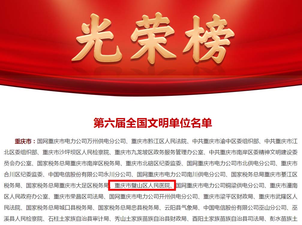 11月20日,全国精神文明建设表彰大会在北京举行,大会表彰了一批精神文明和思想道德建设先进典型,我院获“第六届全国文明单位”荣誉称号! 这是中央文明委在群众性精神文明创建活动方面授予单位的最高荣誉称号,也是我院获得的又一项综合性、重量级的国家殊荣。 “全国文明单位”每三年评选表彰一次,代表了一个单位在文明建设方面的先进性和示范性,是展现我院整体实力和综合竞争力的品牌名片。 近年来,我院以不断满足人民群众对医疗和健康的需求为目标,以党建引领医院高质量发展,以文明创建为载体,全力打造“环境美、人文美、服务美”的美丽医院,取得明显成效。医院将以此次荣誉为新的起点,让文明之风常驻、文明之花常开,为保障群众健康、促进卫生事业发展做出新的贡献。