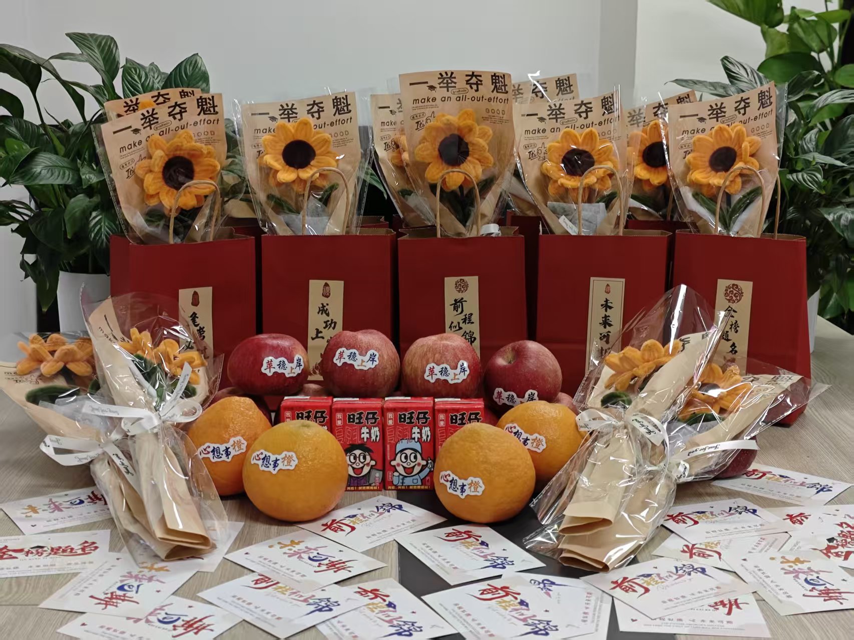 座谈会最后,医院为全体考研学生精心准备的“考研暖心慰问品”,包括励志明信片、“苹”稳上岸、心想事“橙”、一举夺“葵”等,寓意着医院对学子们的深切关怀和美好祝愿。这份特别的礼物让同学们感动不已,纷纷表示将不负期望,全力以赴备战考研。