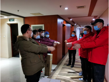 得知我们顺利抵达武汉后,刘碧翠博士立刻带领璧医第二批支援湖北医疗队来到我们驻地,与我们“胜利会师”,送来了酒精、洗手液、烘干机等急需物资,更重要的是,为我们带来了宝贵的“援鄂经验”,指导我们工作中各个环节的防护要点。队员们都听得很认真。