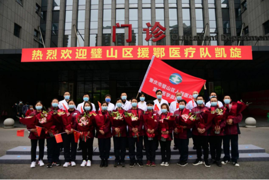 这是一次牵动人心的凯旋。历时43天,这13名队员参与了1000余名病人的分检收治,圆满完成救治任务,受到国家卫健委的充分肯定,工作方法被列为全国学习的“样板”。3月18日的一声捷报,他们满载荣誉和期盼返回重庆。经过14天的隔离休养,所有队员2次核酸检测均为阴性。经重庆市卫健委统一安排,4月1日,13名队员全部平安返回璧山。