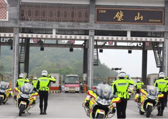 璧山区公安交警早早在渝蓉高速路口待命,以无言守候表达敬意。当载有英雄的车辆出现在视野中,全体交警面向车辆立正敬礼,铁骑开道,警灯闪烁,一路护航!
