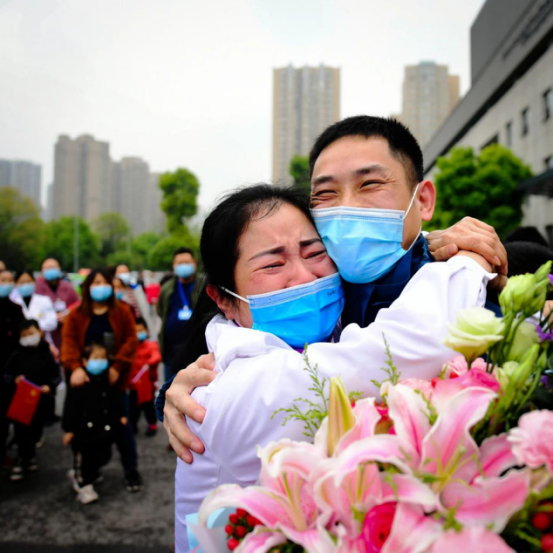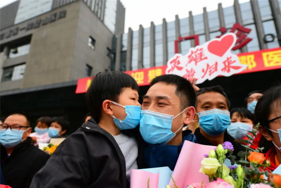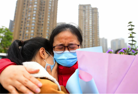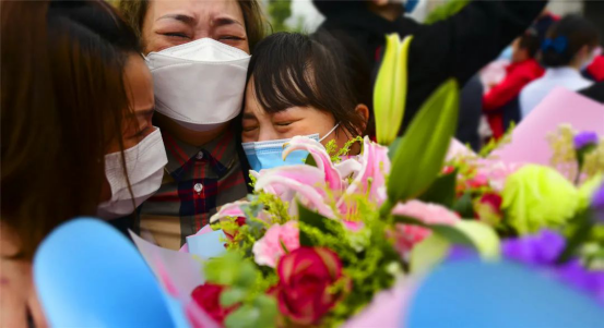 当车门打开的一瞬间,所有人齐声高呼:“抗疫英雄,欢迎回家!"家属、同事一拥而上,动人画面中流淌出的,是喜悦、是感动、是希望,是时隔70天的深情一吻,是稚嫩女儿的破涕为笑,是母女相拥的热泪盈眶……