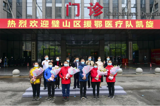 今天,我院第一批援鄂医疗队的6名医护人员返回璧山,他们也是第二批返璧的医疗队员。区委副书记何平、区人大常委会副主任吴建卿、副区长王复莲、区政协副主席雍湘等出席欢迎仪式,代表全区人民欢迎白衣战士们平安凯旋。