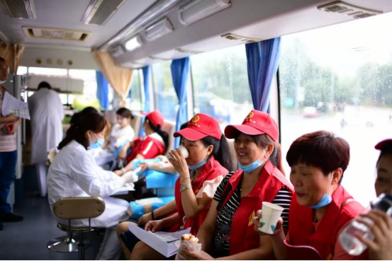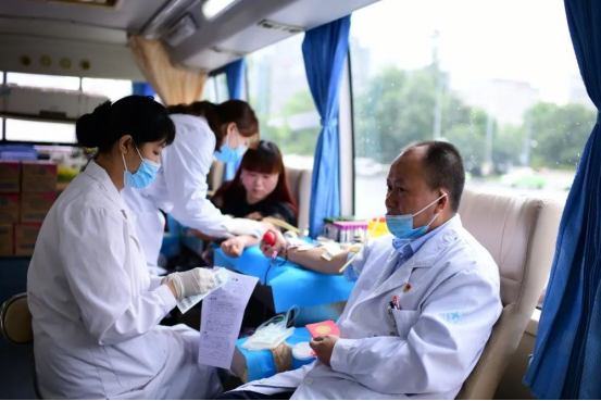 我院医护人员带头上阵献血,现场志愿者和群众也纷纷挽起袖子,献出热血。