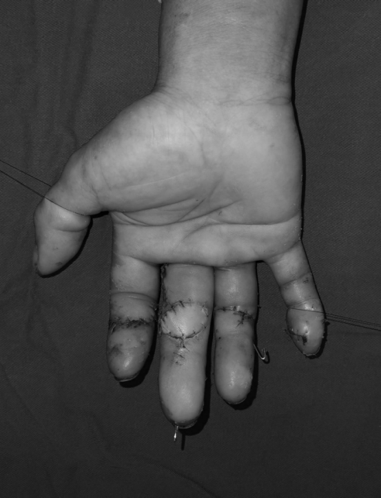 近日,45岁刘先生在工地工作时,由于操作不慎,被圆盘锯割伤右手,导致右手肿痛、严重出血,到我院接受治疗,经检查发现右中指关节缺损。9月30日,我院手足外科团队成功为其实施自体小关节移植修复术,在手外伤创伤修复领域迈出重要一步。