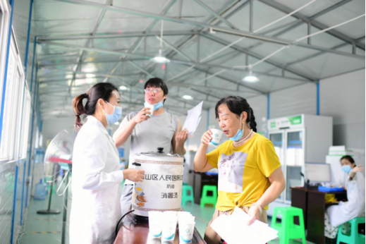 在活动现场,医护人员为群众送上一杯杯解暑的“中药消暑汤”,并协助开展秩序维护、答疑释惑、接种引导、科普宣教等工作。医护人员以热情、耐心的服务得到了广大居民好评的同时,也用实际行动为全国文明城区的创建做出了积极贡献。