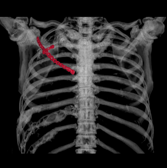 荣腾浩副主任医师、杨富瑜主治医师经过全面检查,研究病例后认为:巨大肿物切除后,胸壁“软化”为常见并发症,进而导致反常呼吸,影响心肺功能,而患者为体力劳动者并且是家庭经济支柱,“重建”胸廓可使患者恢复劳动能力。胸心血管外科团队制定完善手术计划后,决定手术切除后予以Matrix -RIB板重建,手术过程顺利,术后无并发症,目前患者已康复出院。
