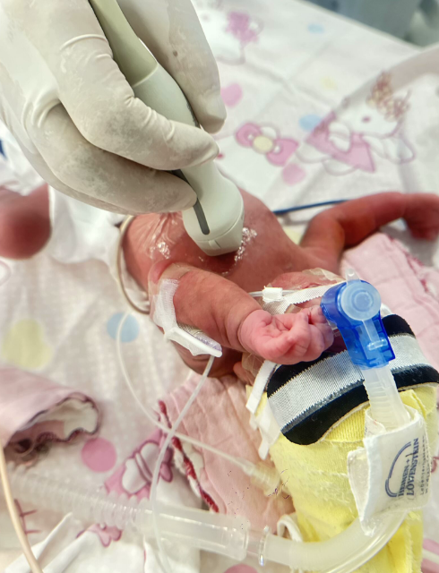 宝宝的肺发育不成熟,不能自主呼吸,出现呼吸窘迫综合征,儿科副主任(主持工作)韩周玻及副主任肖其海当机立断,运用Lisa技术为患儿滴入肺表面活性物质,采用呼吸机辅助通气,让宝贝顺利通过了呼吸关。新生儿的血管细如发丝,穿刺置管极具挑战,专科护士帅宇及罗欢成功为患儿经外周置入静脉中心导管,为其提供了一条安全、有效的输液和给药通道。同时,新生儿科团队通过微量喂养的方式,逐步提升宝贝的奶量,最终实现了全肠道喂养。经过22天的精心救治,患儿各项生命体征平稳,体重也增长到1.88kg,各脏器发育良好,最终顺利出院。