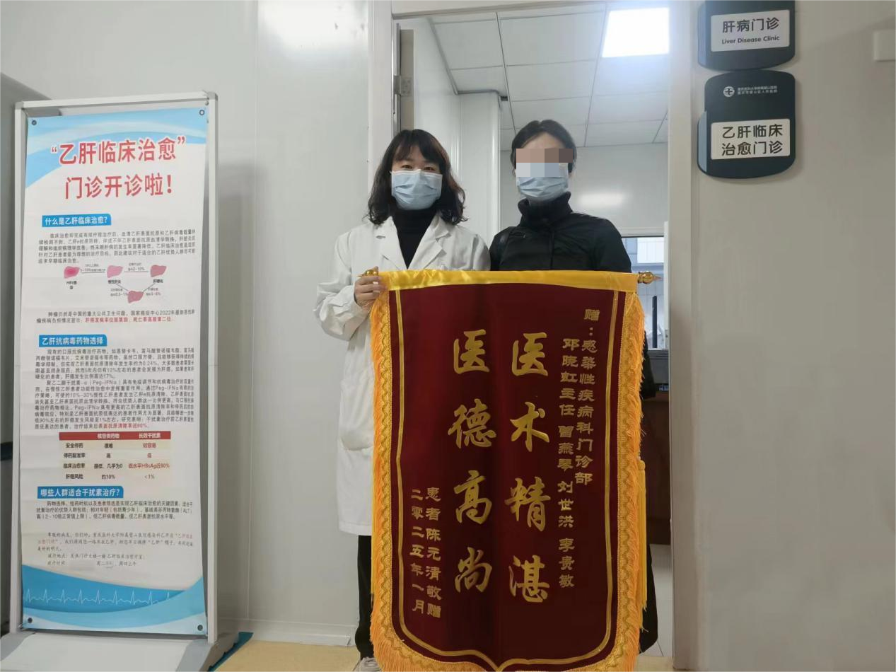 感染性疾病科副主任(主持工作)邓晓虹副主任医师,凭借着丰富的临床经验与专业的医学知识,对陈女士的各项指标进行了细致评估,发现她符合乙肝临床治愈的优势人群标准。随后,科室团队与陈女士进行了深入且全面的沟通,制定了恩替卡韦联合聚乙二醇干扰素抗病毒治疗的方案。在整个治疗期间,医护人员密切监测可能出现的不良反应,不放过任何一个细节,只为确保陈女士的治疗安全有效。通过5个多月的努力,陈女士的检查指标显示乙肝表面抗原清除,乙肝表面抗体阳转,且滴度持续上升,最终实现了我院首例乙肝“临床治愈”。