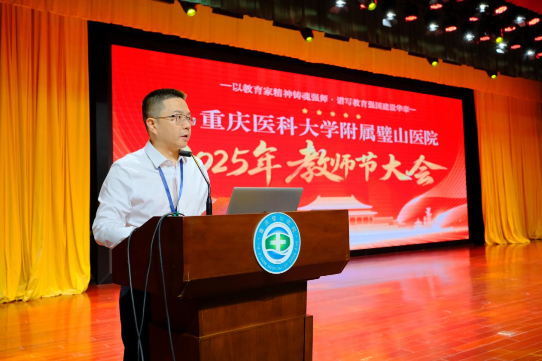 副院长单雪峰宣读“2024-2025学年教学先进个人、先进集体”表彰文件,以及2025年“琢玉”杯青年教师教学能力比赛获奖名单,随后,大会为教学先进个人、先进集体及教学比赛获奖人员依次颁发了荣誉证书,表彰活动旨在激励全院教职工以先进为榜样,积极弘扬追求卓越的教学主旋律,共同为推动医院高质量发展、培育新时代卓越医学人才作出新的更大贡献!