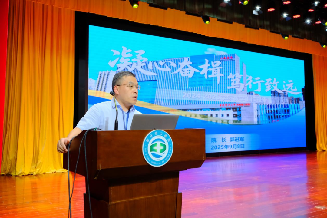 院长郭进军在2024-2025学年教学工作报告中,系统回顾并总结了医院过去一学年在师资队伍建设、教学质量提升、学生全面发展等方面取得的突破性进展与标志性成果,并部署了下一阶段医院教学工作的重点任务,将以深化教学改革为核心,进一步强化医、教、研三者的协同融合,着力构建高质量医学人才培养新格局,为医院高质量发展注入持续动能。