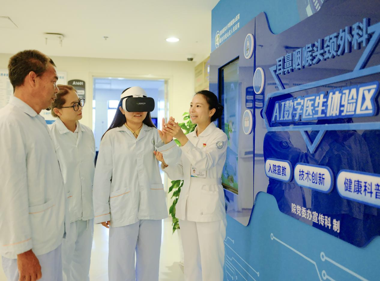 患者与“AI数字医生”互动问答这一幕出现在重庆医科大学附属璧山医院(重庆市璧山区人民医院)耳鼻咽喉头颈外科住院病区。在该病区的“AI数字医生”体验区,患者黎女士指尖轻触大屏,通过简单的语音对话,便快速获得了关于鼻窦炎手术前准备的专业指导。